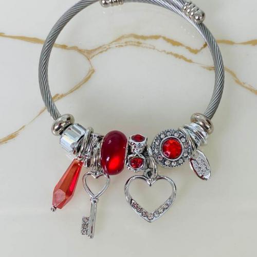 Kalpli Kırmızı Çelik Charmlı Bileklik