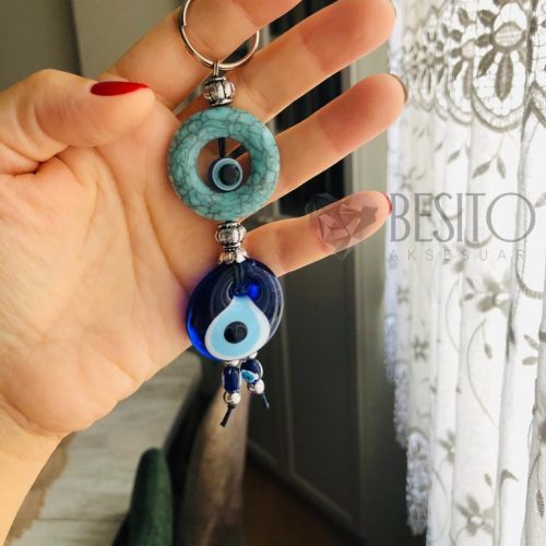 Cam Nazar Boncuklu Halkalı Anahtarlık