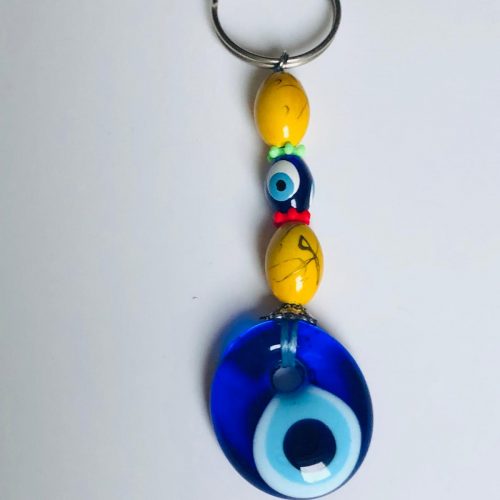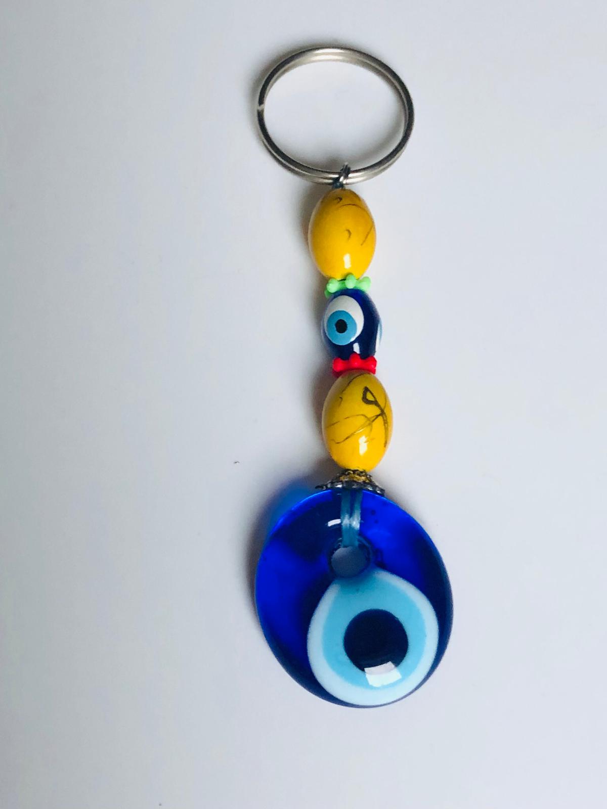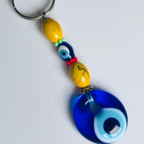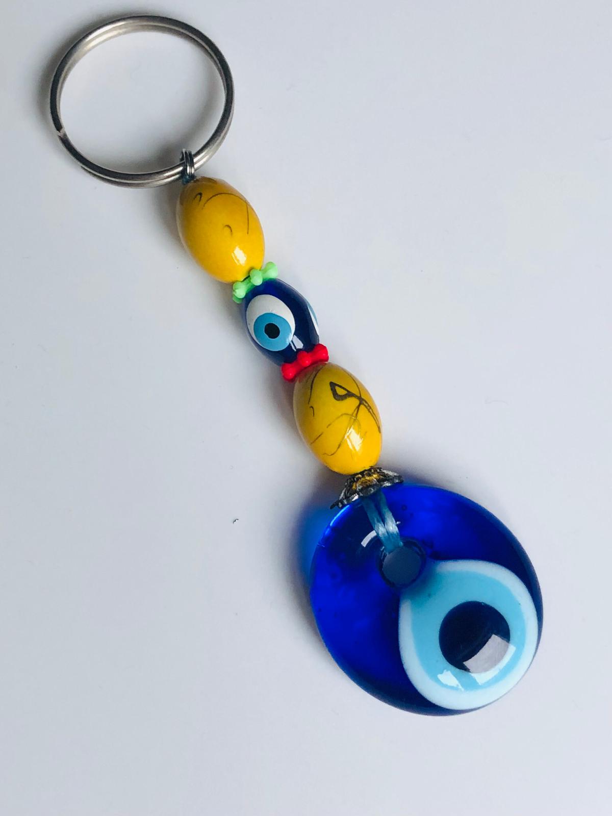 Cam Nazar Boncuklu Hardal Renk Anahtarlık