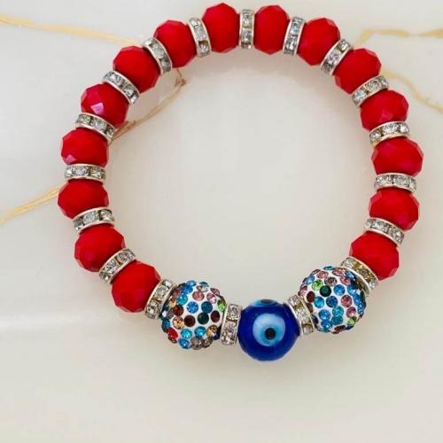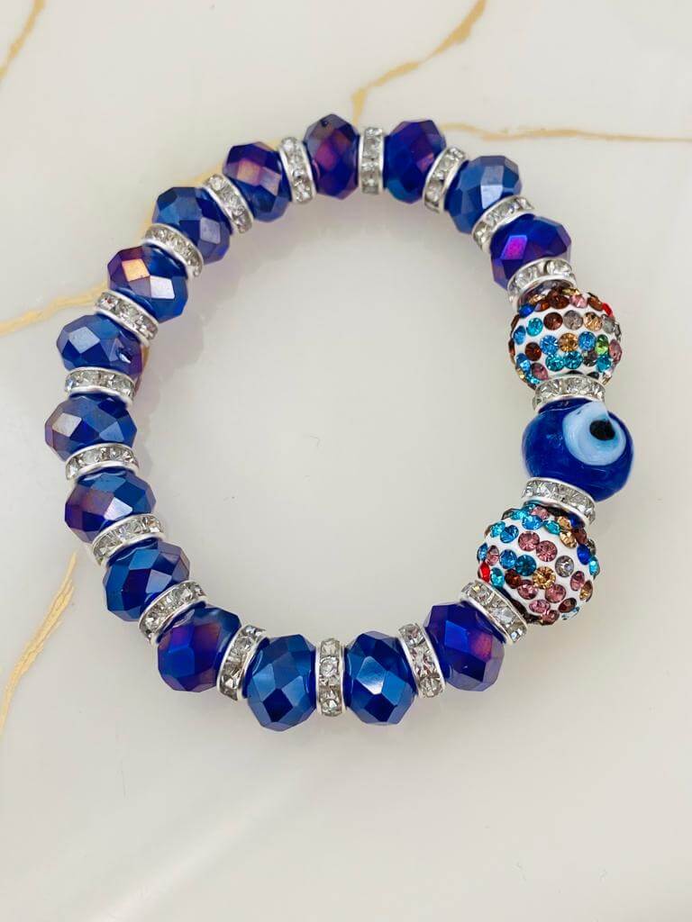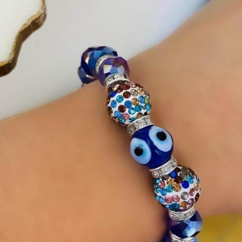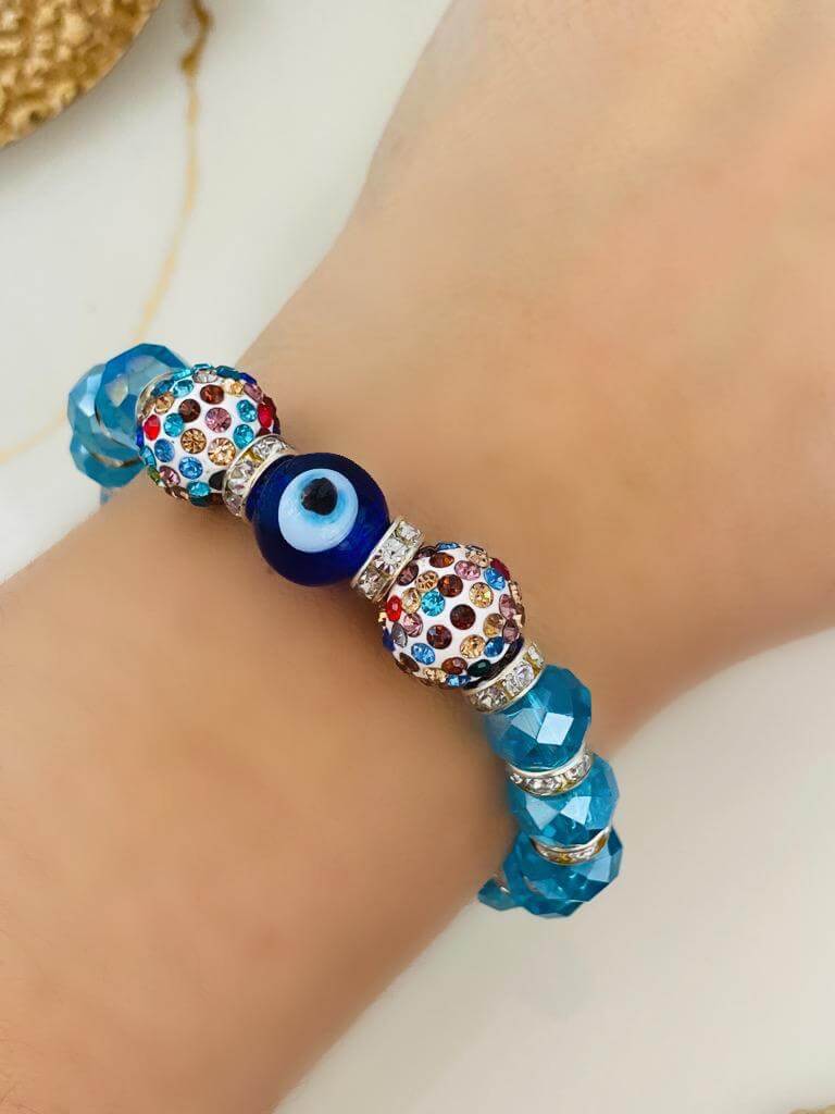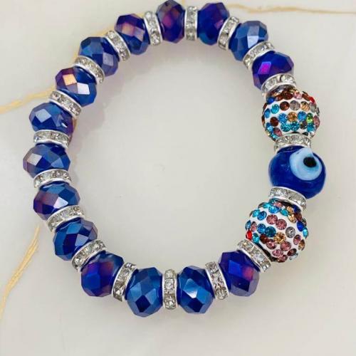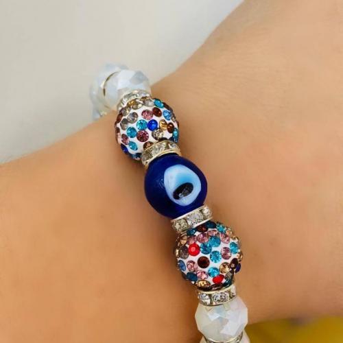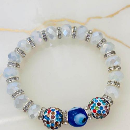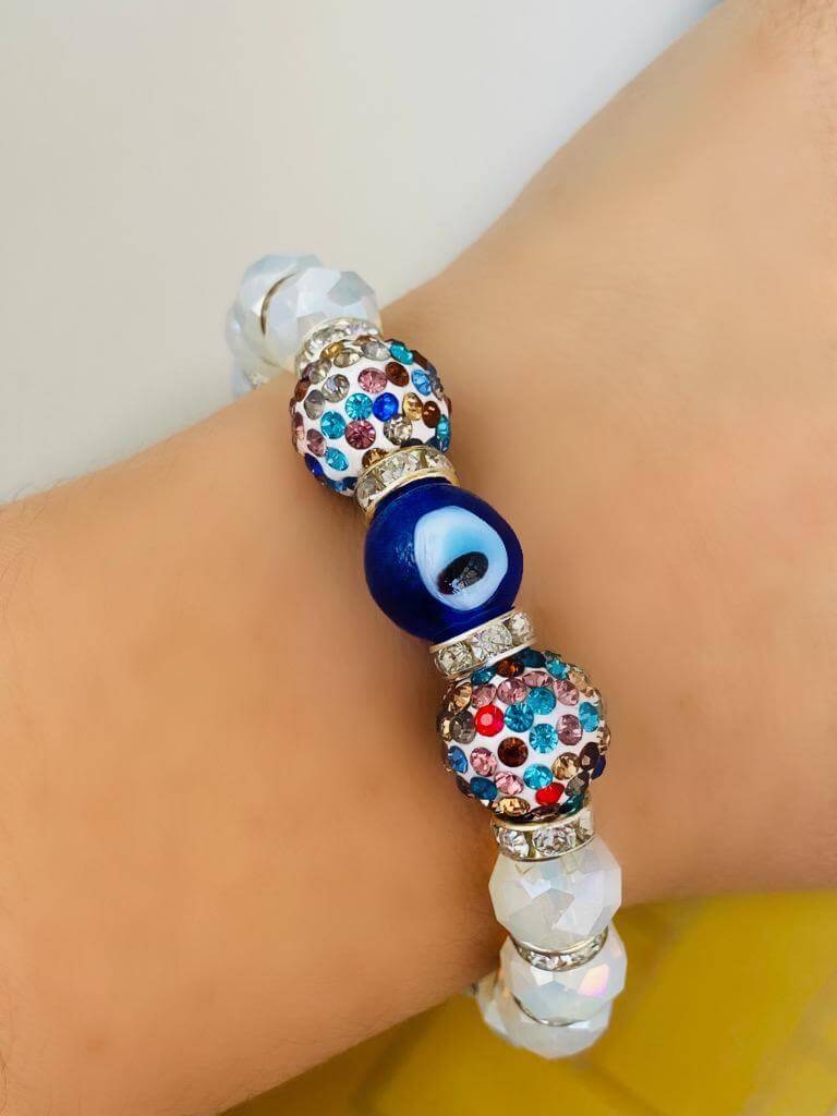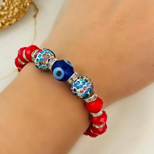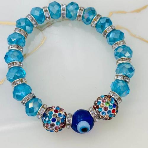 Cam Nazar Boncuklu ve Kristal Taşlı Lastikli Bileklik