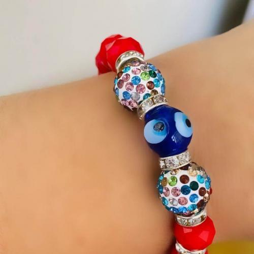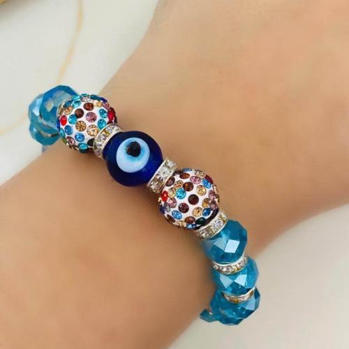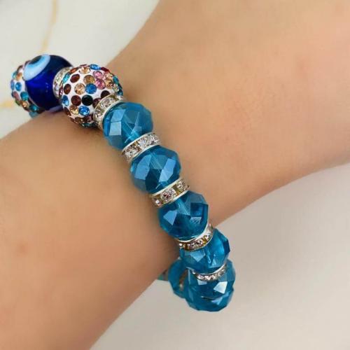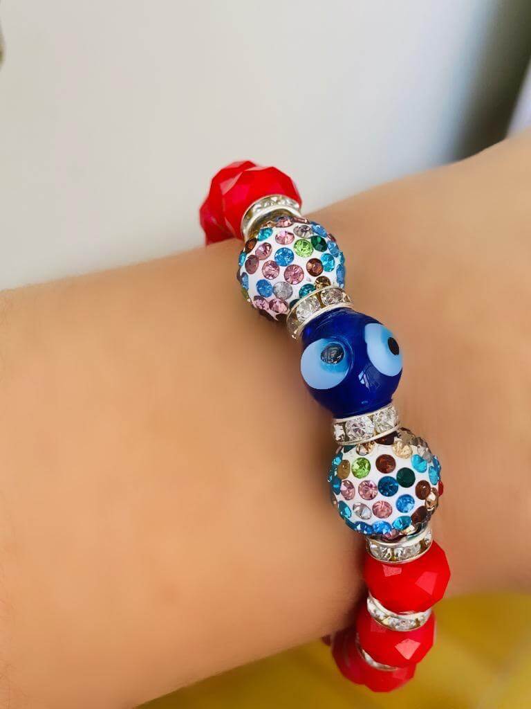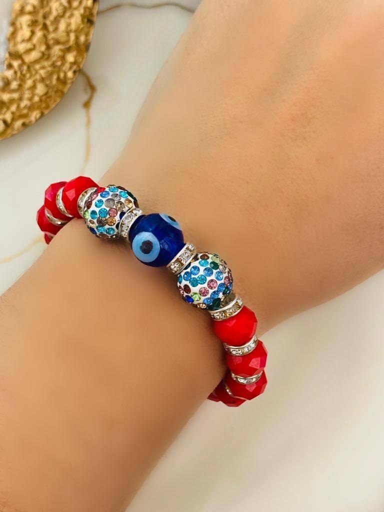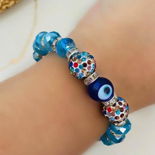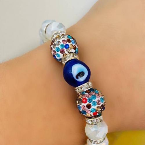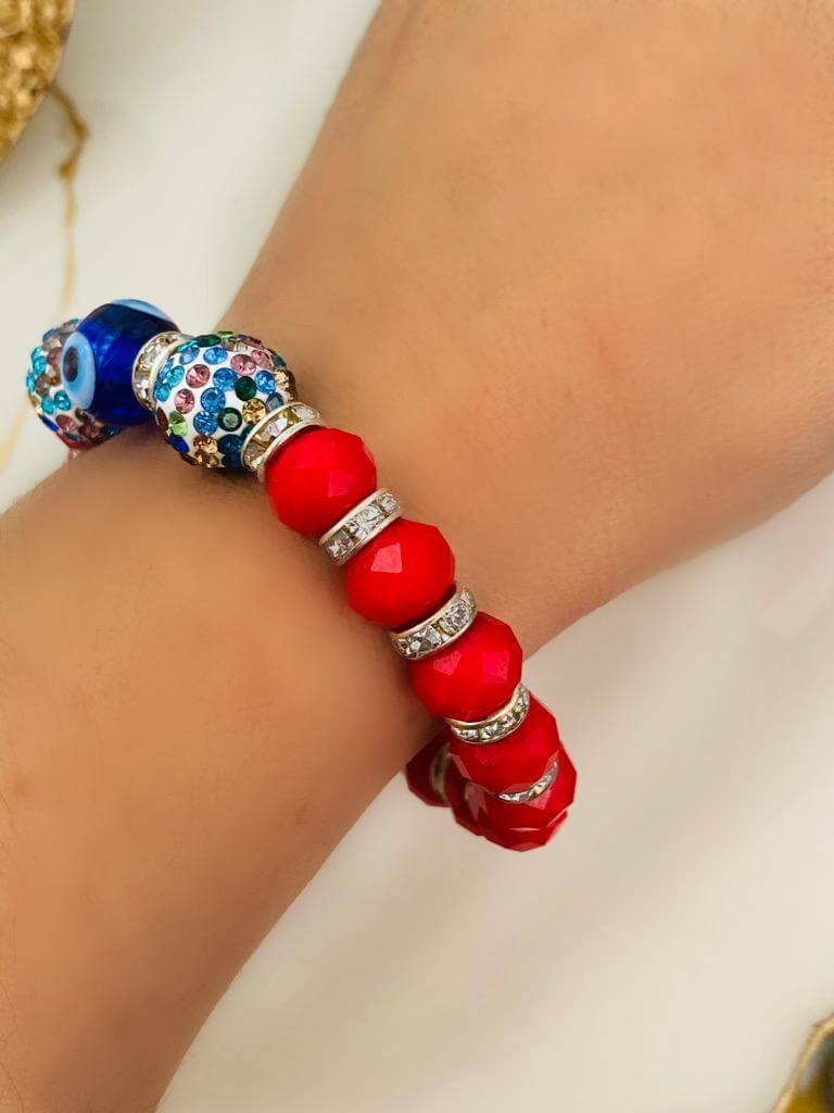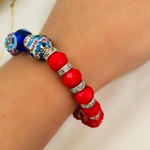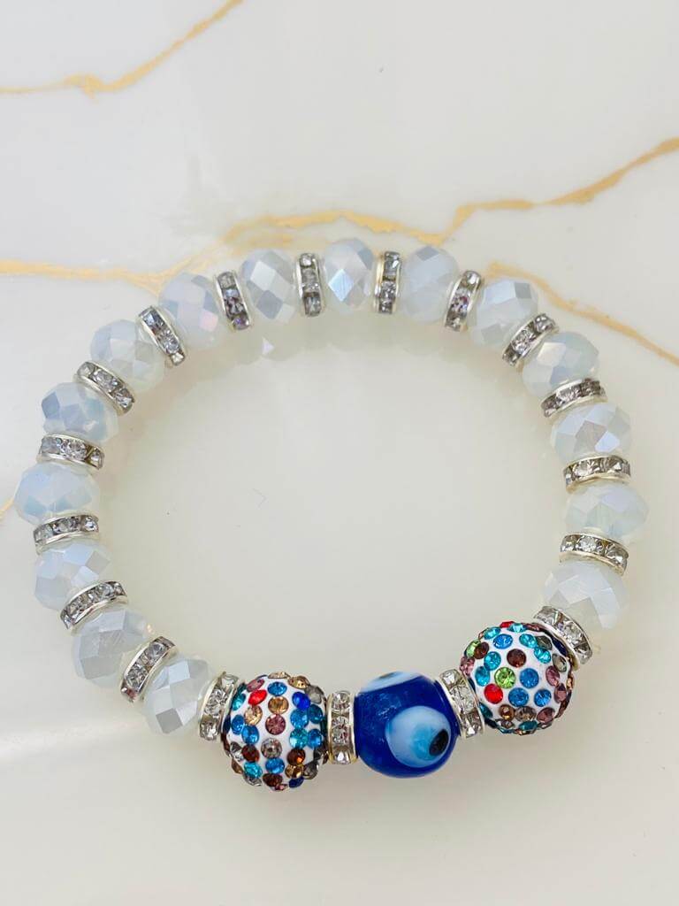 Cam Nazar Boncuklu ve Kristal Taşlı Lastikli Bileklik