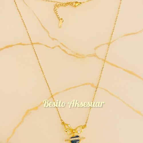 Metal kısımları altın kaplamadır. Kolye boyu yaklaşık 50 cmdir. İlave olarak 5 cm uzatma payı bulunmaktadır. Ürünün uzun süre kullanımı açısından su ve parfüm türü kimyasallardan uzak tutulması tavsiye edilir Ayrıca kişinin kendi ten yapısının bijuteri ve kaplama ürünleri kullanmaya uygun olması gerekmektedir. Bazı tenlerin karartma yaptığı unutulmamalıdır. Siparişleriniz 3...
