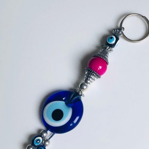 Cam Nazar Boncuklu Fuşya Renk Anahtarlık