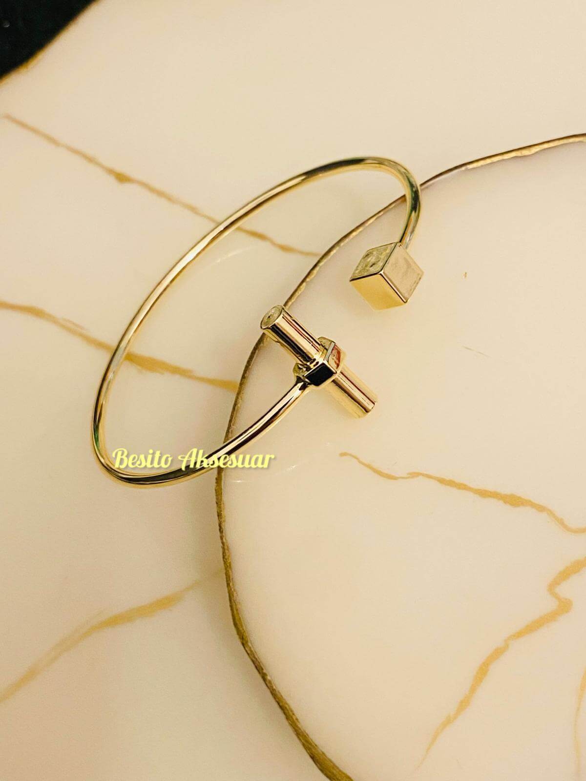 Marka Model Küplü Silindirli Altın Kaplama Kelepçe Bileklik