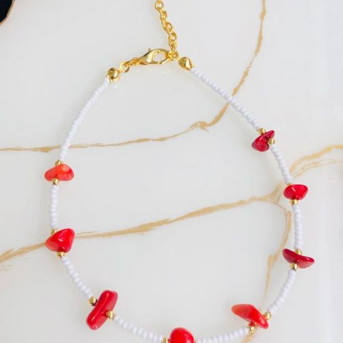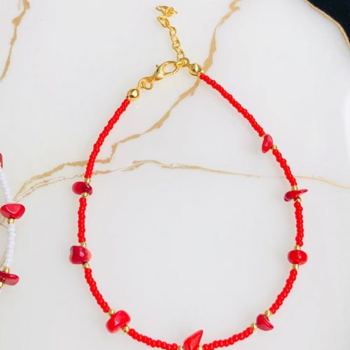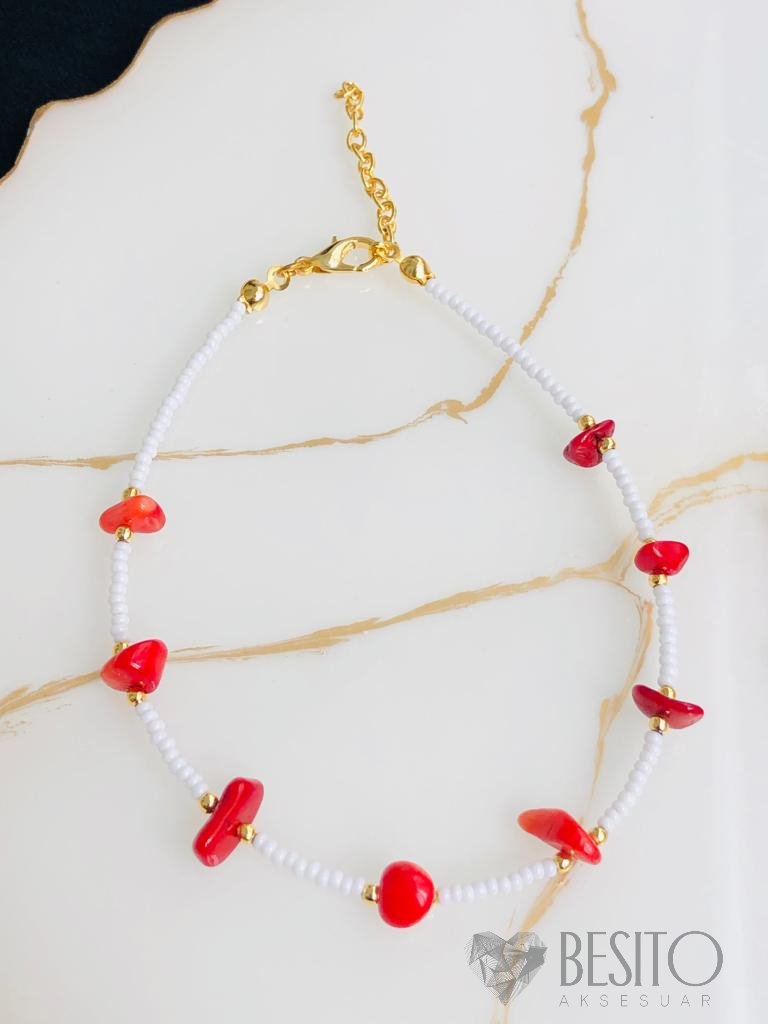 Doğaltaş mercan ve sedef taşlıdır. Altın Kaplama üründür. Halhal boyu 22 cm’dir, ilave okarak 4 cm uzatma payı vardır Ürünün uzun süre kullanımı açısından su ve parfüm türü kimyasallardan uzak tutulması tavsiye edilir Ayrıca kişinin kendi ten yapısının bijuteri ve kaplama ürünleri kullanmaya uygun olması gerekmektedir. Bazı tenlerin karartma yaptığı...