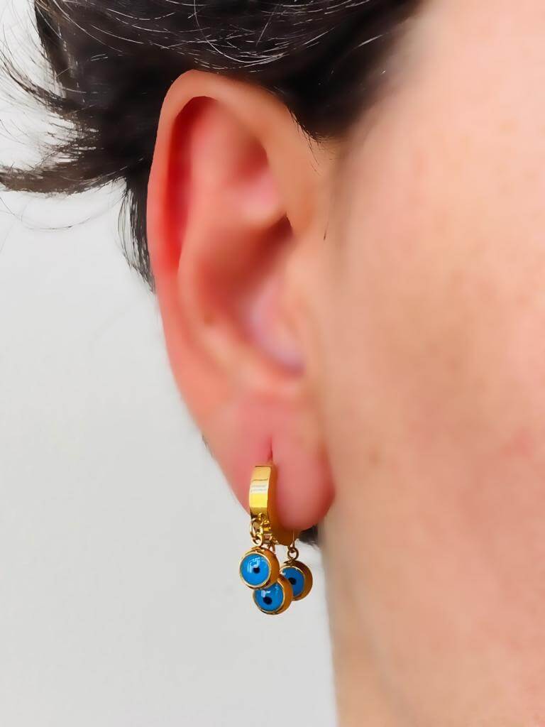 Küpe halka çapı 1 cm, nazar boncukları dahil küpe boyu 2 cm dir.