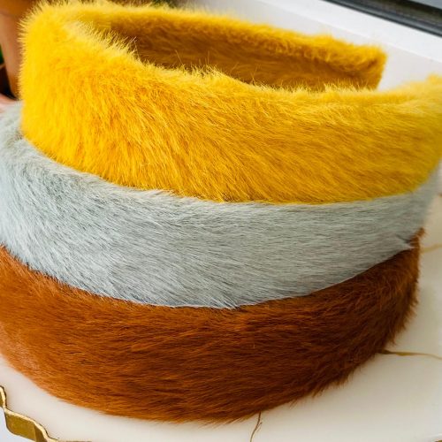 vizon renk ve gri renk taçlar saçta takılı olarak gösterilmiştir