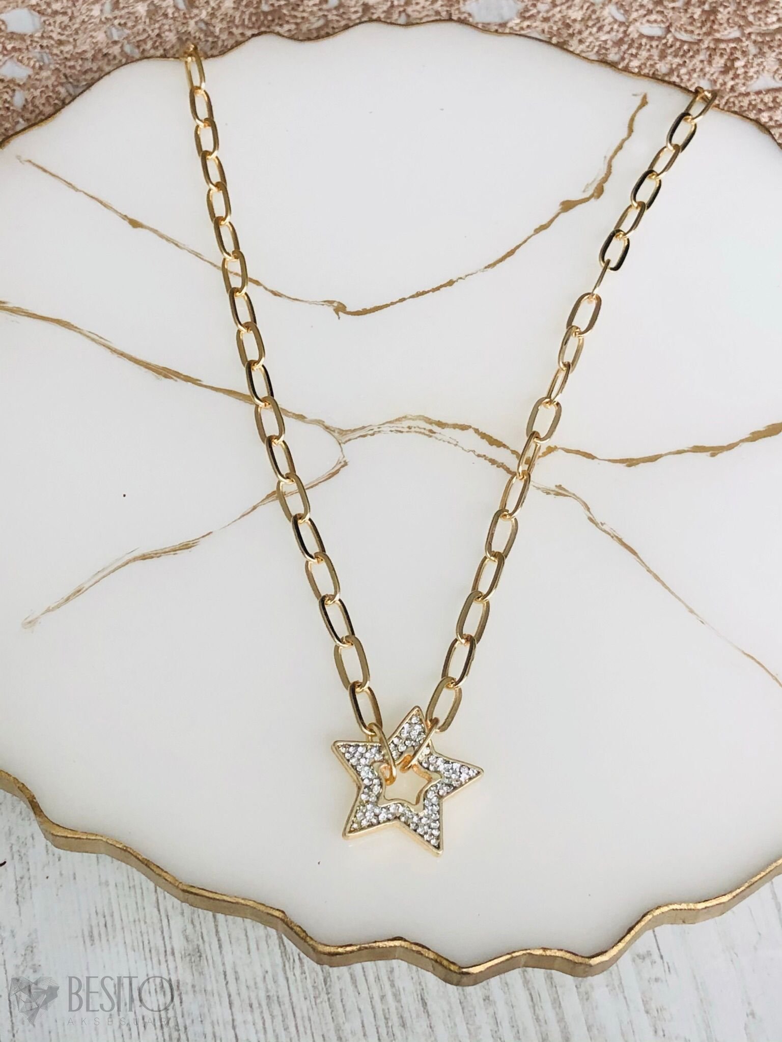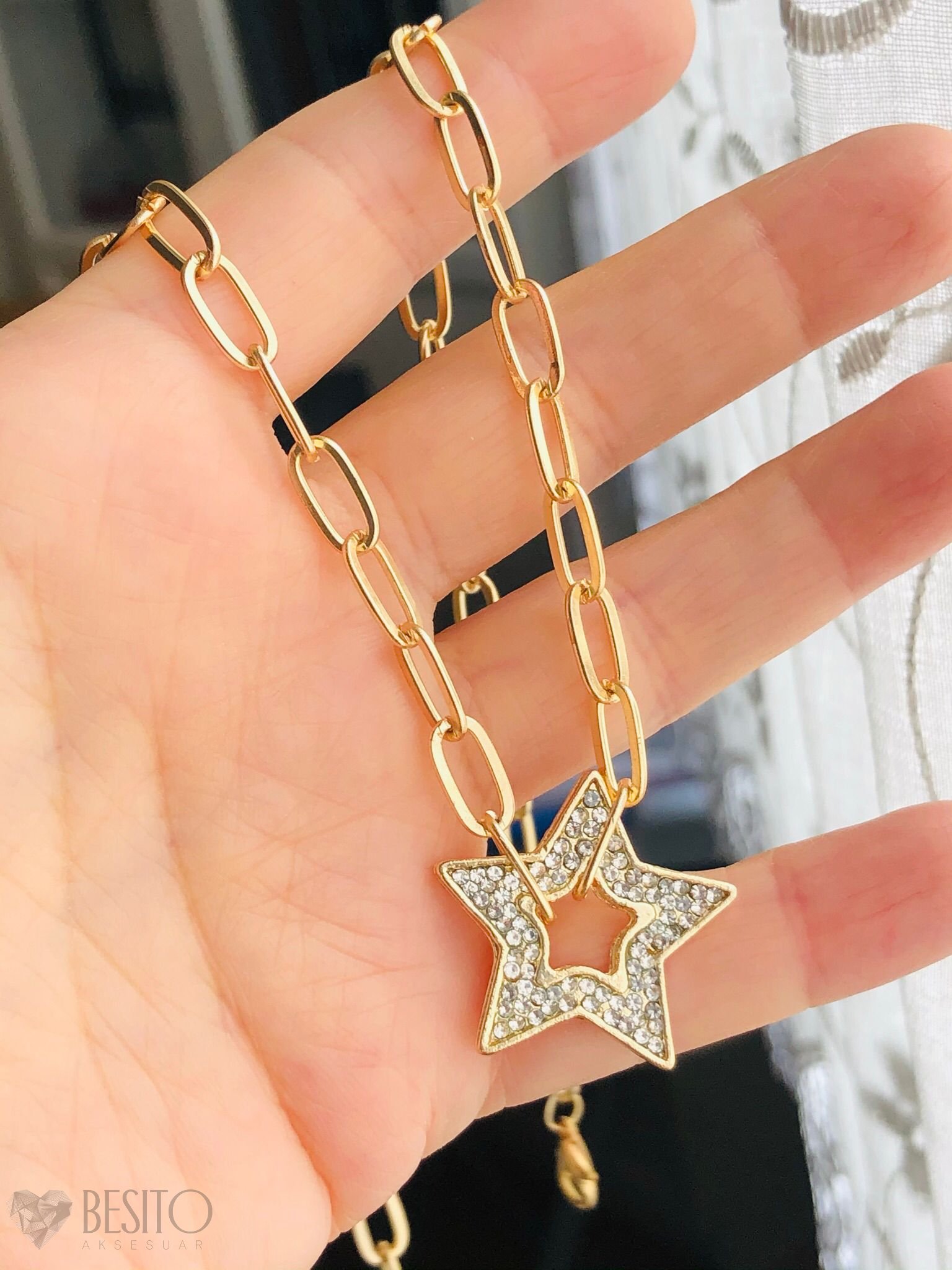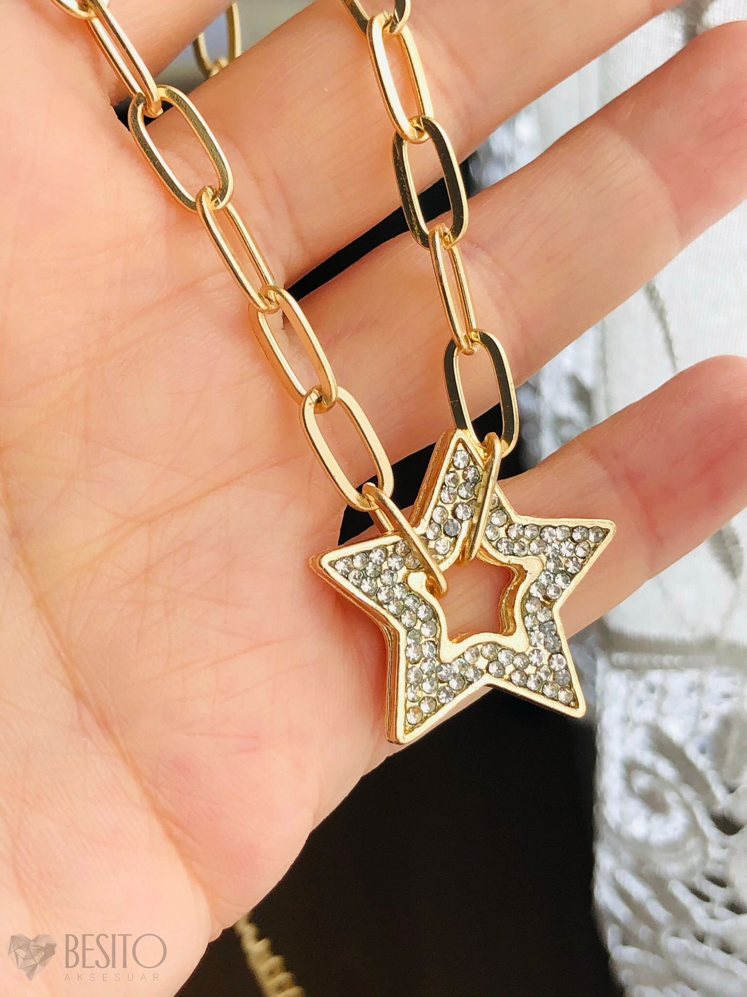 Kolye ucundaki yıldız figürü 2,5 cm uzunluğundadır