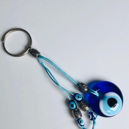 Uzun Sallantılı İpli Cam Nazar Boncuklu Anahtarlık