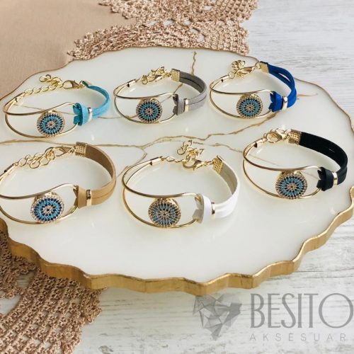 Yarısı Deri Yarısı Plaka Nazarlıklı Deri Bileklik