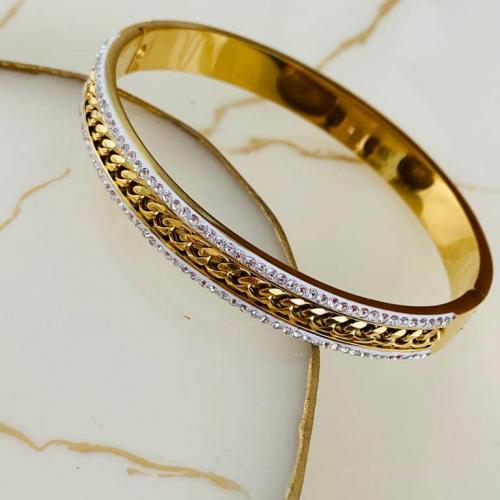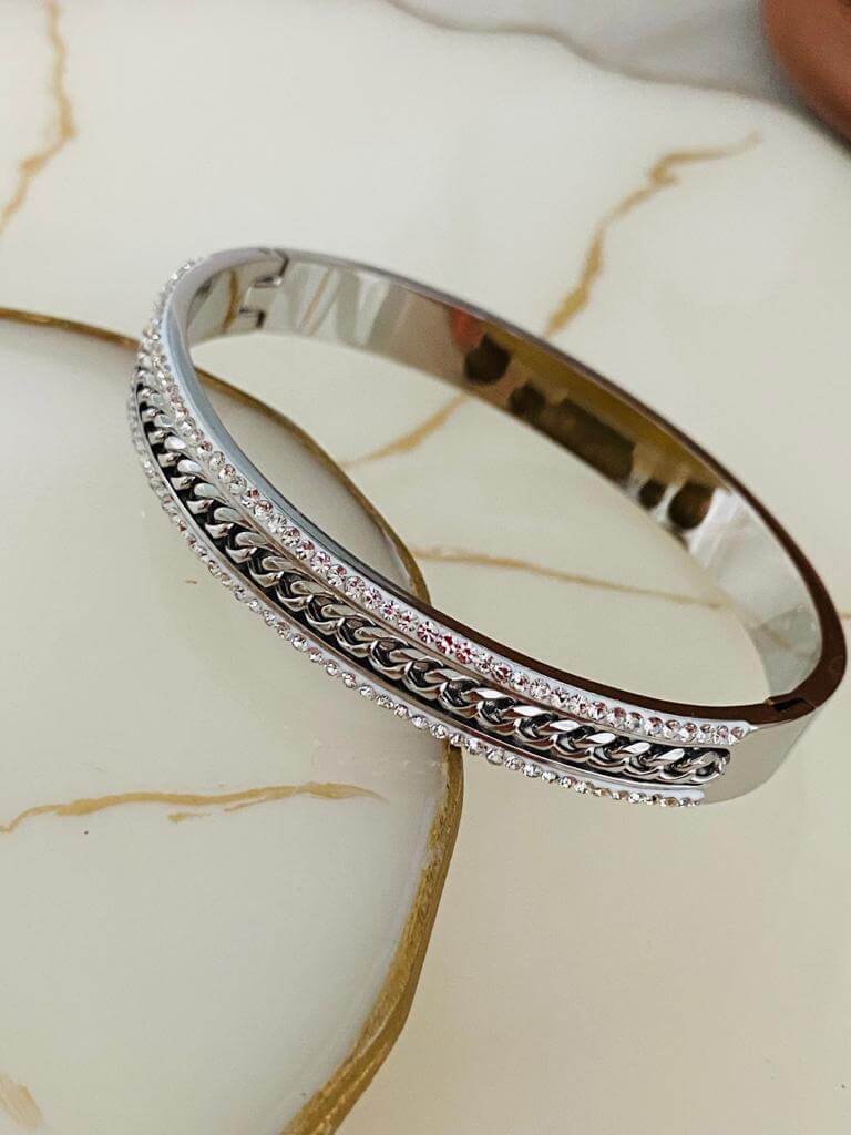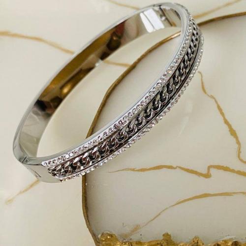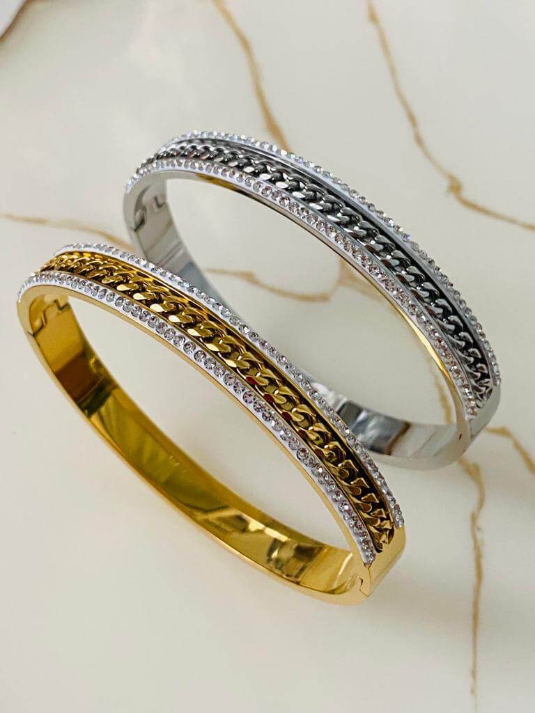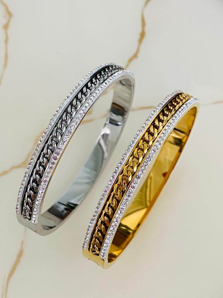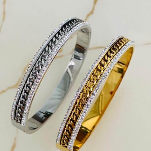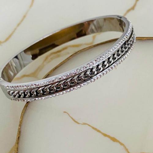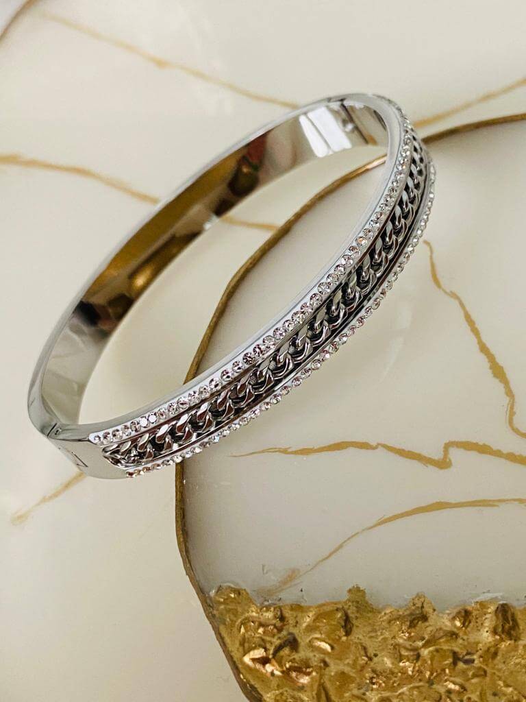 Marka Model Taşlı Çelik Kelepçe Bileklik