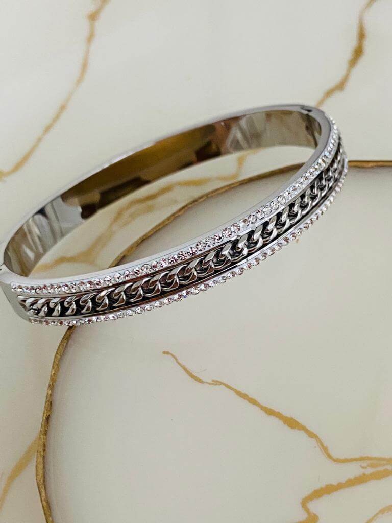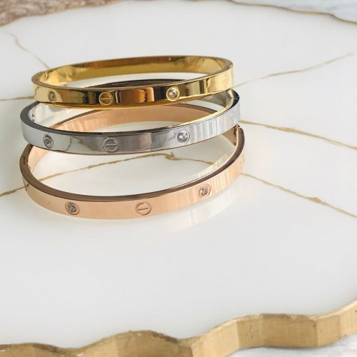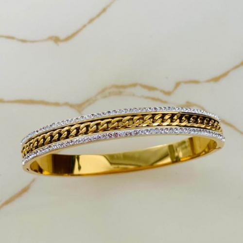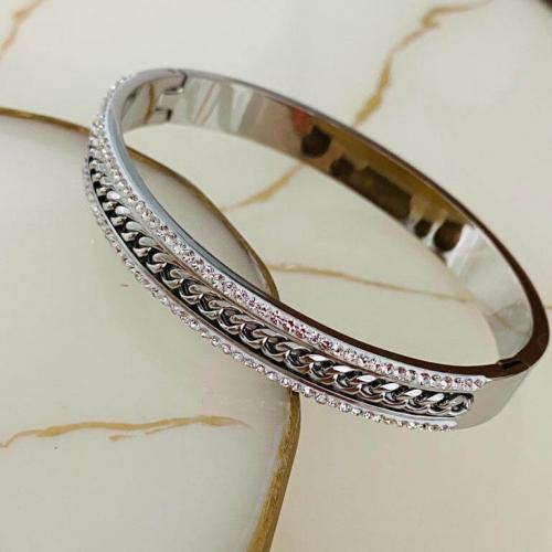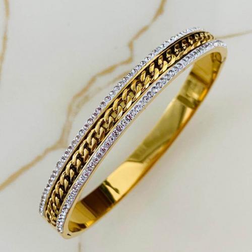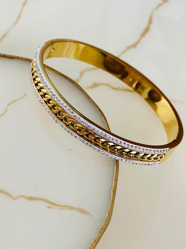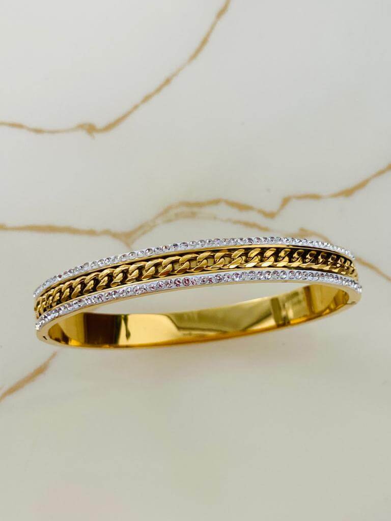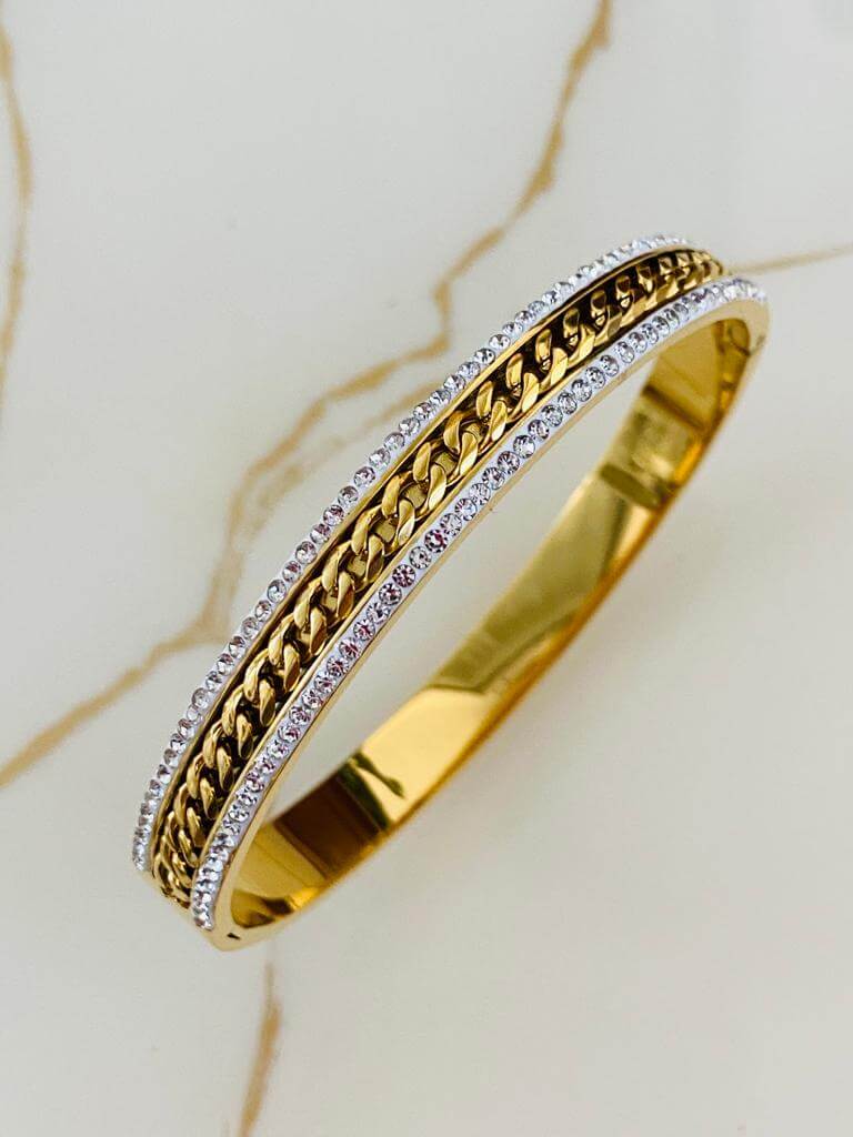 Marka Model Taşlı Çelik Kelepçe Bileklik